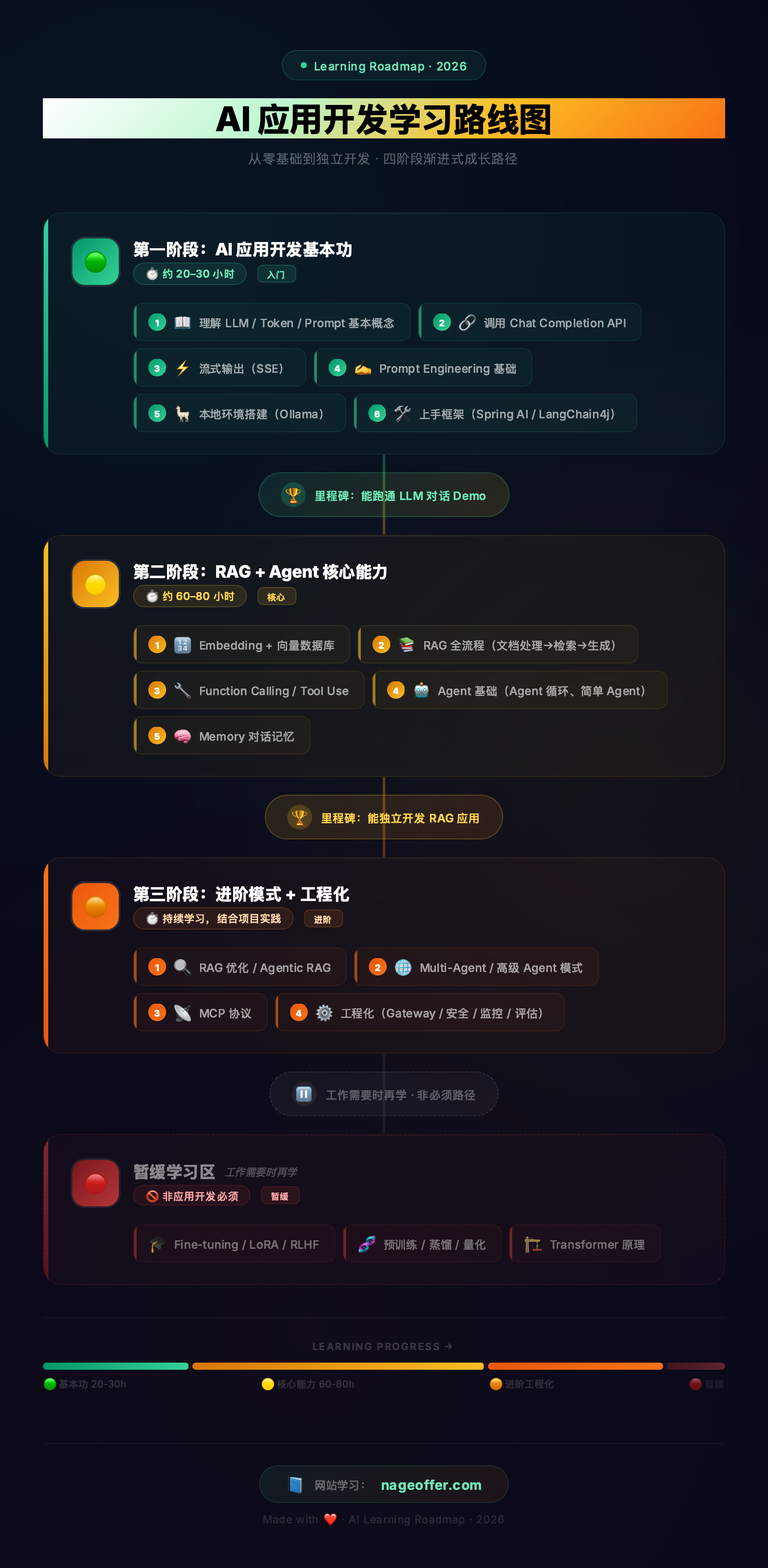 说到底, 学 AI 应用开发和当年学 Java 后端没有本质区别——都是理解核心概念、熟悉技术栈、然后在项目中反复练。如果你已经有后端工程基础,上手甚至会比预期更快。