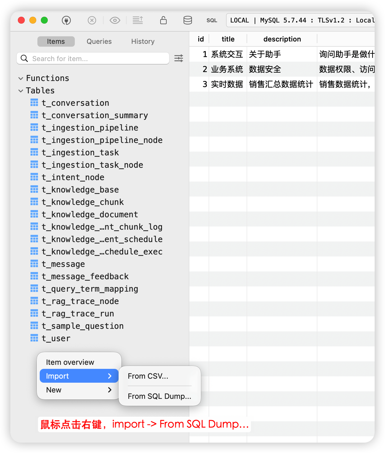 考虑到不同开发者使用的 MySQL 客户端工具各不相同,本章节将提供两种通用的数据初始化方式,你可以根据实际情况选择其中任意一种: